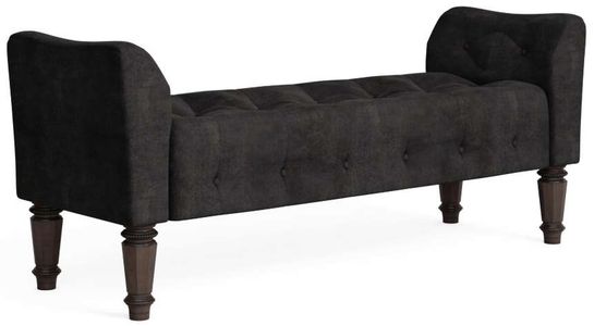 Upholstered in sumptuous charcoal velvet fabric, this bench exudes opulence and glamour. The inside seat and arms feature exquisite diamond button tufting, adding a touch of sophistication and elegance to the design.Read More