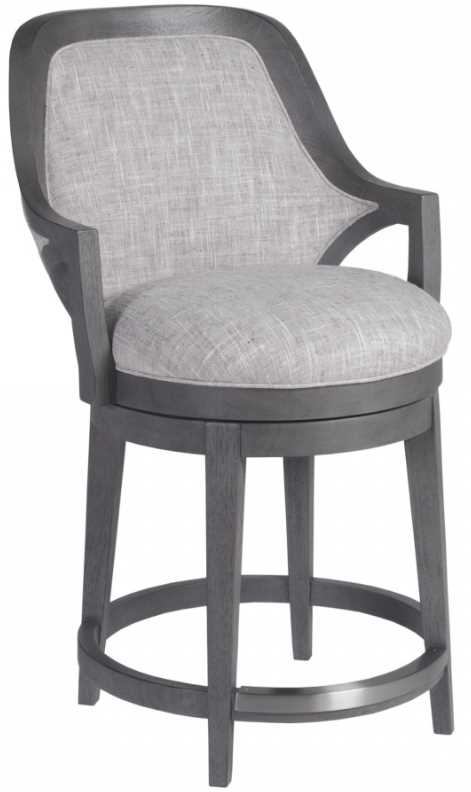 Fully upholstered swivel stool with shaped back, kick plate and tapered legs provides ideal function and comfort. The medium gray wirebrushed finish pairs handsomely with the Berkshire fabric 221371, a stain-resistant performance fabric with the look and hand of natrual woven linen in a taupe coloration.Read More