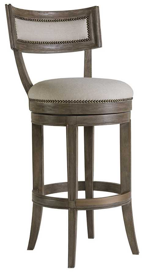 Updated traditional design crafted from Mahogany veneers, bleached Mahogany and select hardwoods in the Grigio finish, a warm gray tone with hand wire brushing. The upholstered back splat and memory swivel seat are available as shown in a linen and cotton blend with a soft hand in a natural greige coloration.Read More