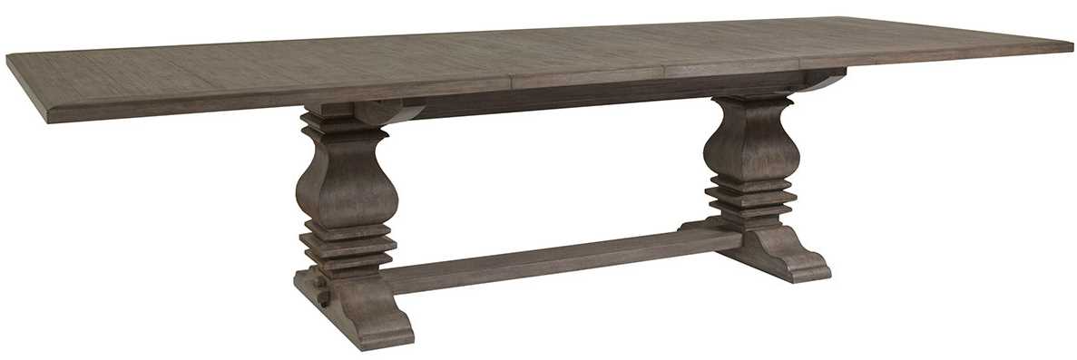 The 88-inch table extends to 124 inches with two 18-inch leaves to seat 12 comfortably.