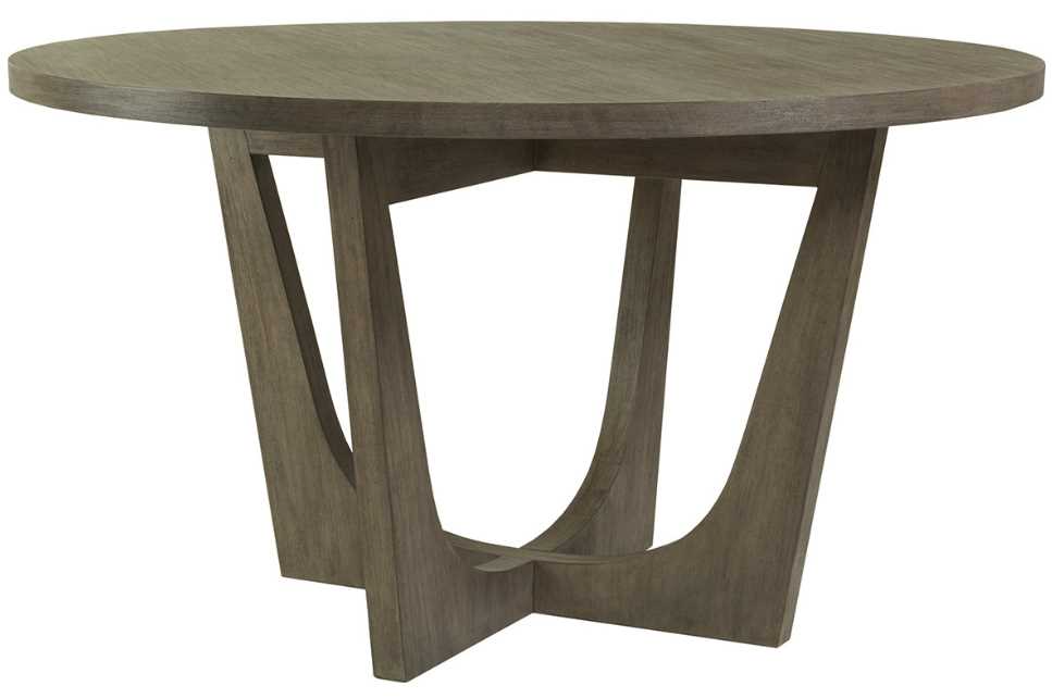 Mahogany solids and veneers in straight grain patterns on the top with hand wire brush graining in the Grigio finish, a warm gray tone. The 54-inch diameter table seats four comfortably within the architectural four leg base.Read More