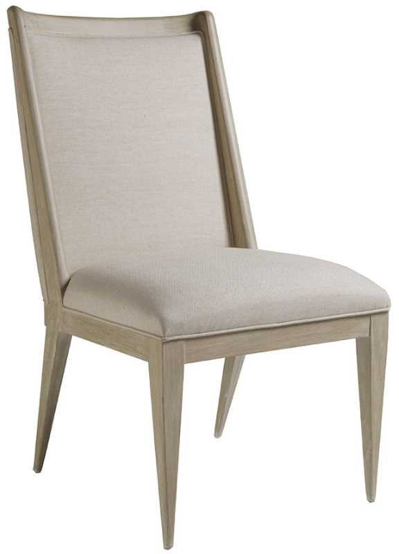 The upholstered outback, inback, and seat are framed in Mahogany solids with hand wire brush graining in the Bianco finish, a white wash over wood tone with hand wire brushing. Available only as shown in a linen and cotton blend fabric with a soft hand in a natural greige coloration.Read More