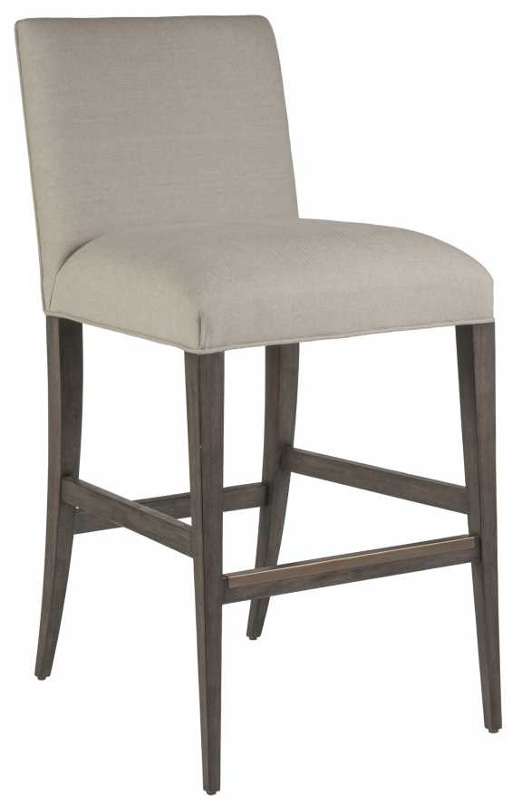 Traditional upholstered, low back bar stool crafted from mahogany and solid hardwoods. The standard fabric 153671 is a linen and cotton blend with a soft hand in a natural greige coloration.Read More