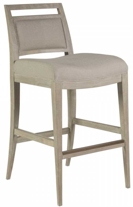 Mid-Century design in mahogany and select hardwoods. The upholstered bar stool is available in standard fabric 153671, a linen and cotton blend with a soft hand in a natural greige coloration.Read More