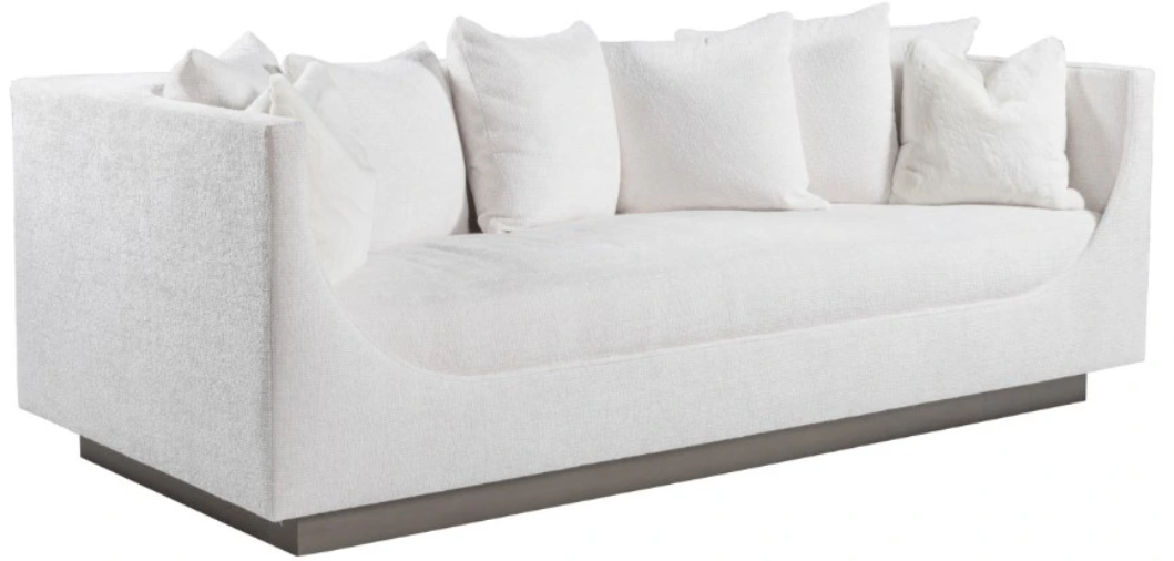 Stunning transitional form hallmarked by long, gentle curves capturing a thick bench seat and tapering up to create a shelter effect that finishes in a sleek, narrow arm. The dramatic recessed plinth and deep back rail lend an architectural vibe to what is otherwise a statement in chick, pillowy comfort.Read More