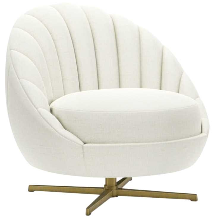 Lucille is a sublimely scaled Mid-century Modern form featuring interior channels that taper in as they meet the seat, creating a contemporary fan-like appearance. The in-back is intentionally pitched back to give the silhouette a more modern appearance while still maintaining great seating comfort. The swivel base is finished in a brass coloration.Read More