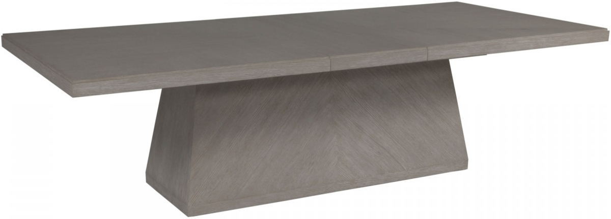 Conceived to inhabit modern environments in both coastal and mountain settings, the bold form of the dining table utilizes various grain directions to add interest, depth and visual character. Two 20-inch straight grain leaves can be added to the 4-way match veneer top to welcome ten comfortably.Read More