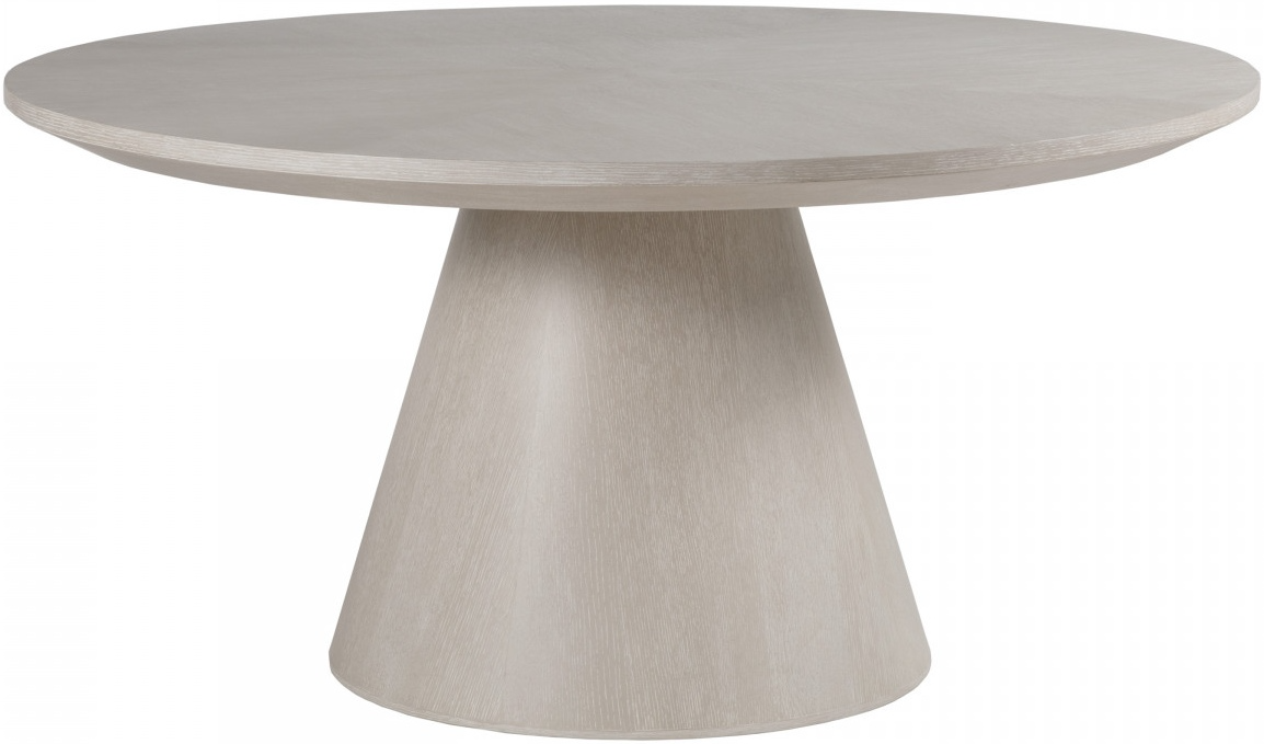 The 60-inch diameter dining table is a bold modern form that showcases radial matched grains on the veneered top to add interest and visual character above a 30-inch tapered base.Read More