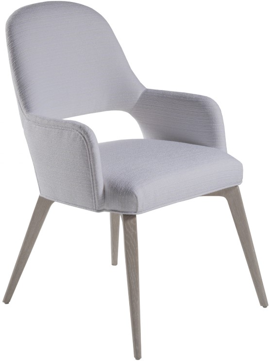 The intrinsically modern arm chair works with many of our dining tables, and pairs well with the transitional side chair. Standing on solid oak legs and dressed in a performance chenille running horizontally across the chair in a fresh tone-on-tone coloration.Read More