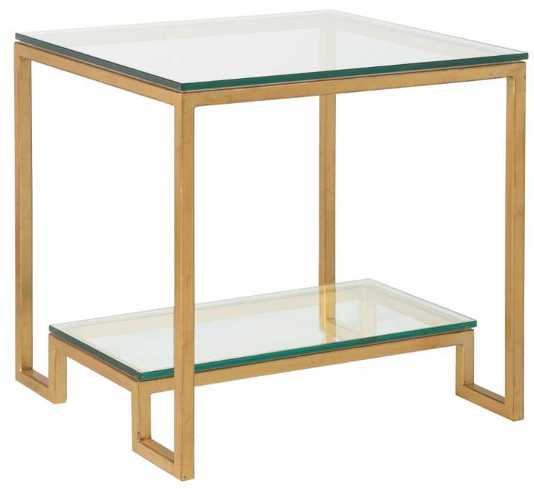 Tubular steel frame, glass top with flat polished glass top and shelf. Shown in the gold leaf finish, a true gold leaf with an antiqued effect, but also available in all Artistica Metal Designs finishes.Read More