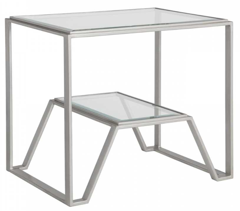 Hand-shaped tubular steel frame with flat polished glass top and shelf. Shown in the Argento finish, an antiqued silver with gold undertones, but also available in all Artistica Metal Designs finishes.Read More