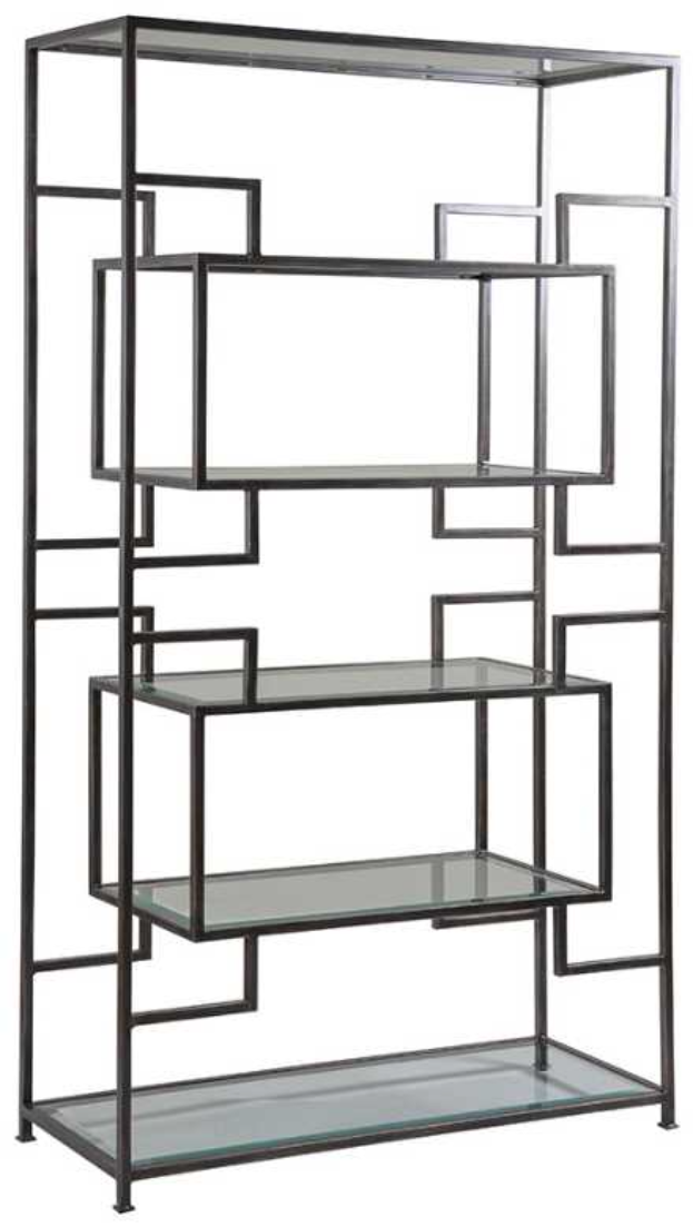 Dramatic linear architectural form constructed of tubular steel. The tubular steel frame features six inset glass shelves, all tempered with 1-inch bevels, providing ample display. Available in all Artistica Metal Designs finishes.Read More