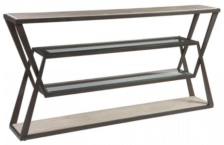 Steel base in a ribbed brown finish with a Desert travertine top and two beveled tempered glass shelves. Perfect for holding essentials or displaying decor, its refined design enhances interiors with timeless appeal, making it a stylish and practical addition to modern living spaces.Read More