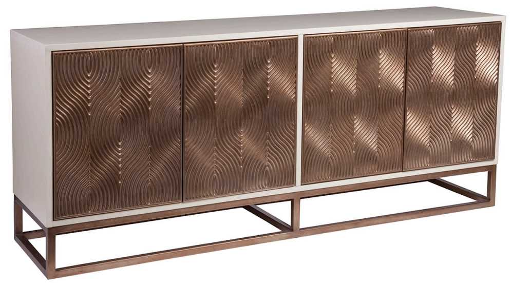 The patterned casted door fronts create a moir effect, lending a glamorous iridescence to any setting. The console features four adjustable shelves behind the four soft-close hinged doors with touch latch hardware.Read More