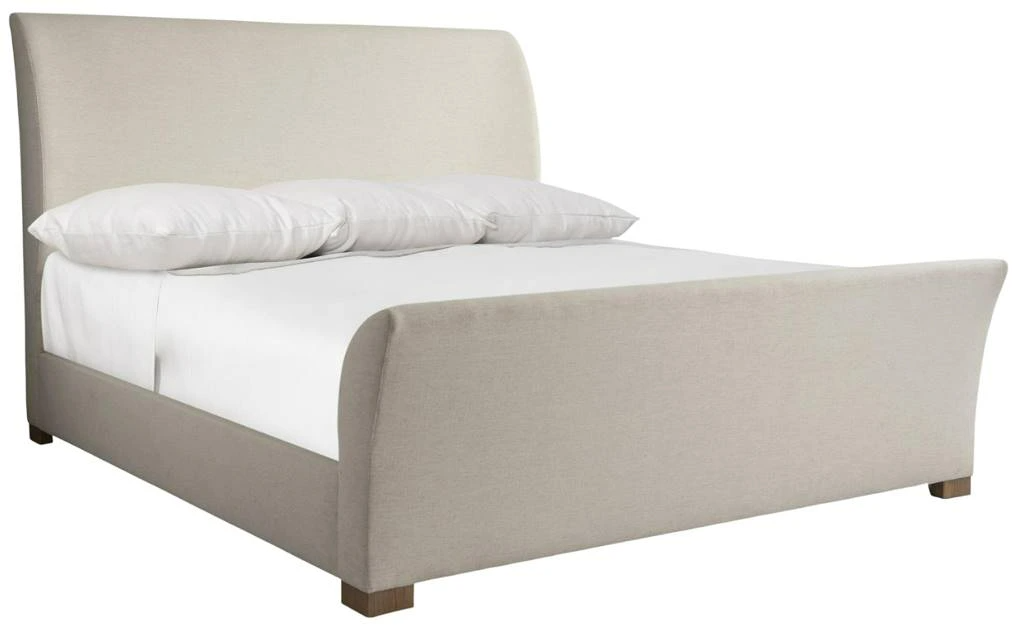 The traditional sleigh design is given a more modern form in the Modulum sleigh bed. The shaping is sweeping and updated, while the headboard and footboard are lushly upholstered for comfort and style. The exposed wood feet are finished in a warm Sahara look.Read More