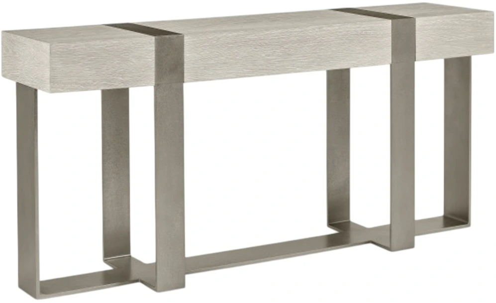 Bands of sandblasted aluminum in Satin Nickel finish intersect to form the base of the Tempo console table. Two bands wrap through the table's top, which is wire-brushed oak in Larza finish. The architectural design is both casual and refined.Read More