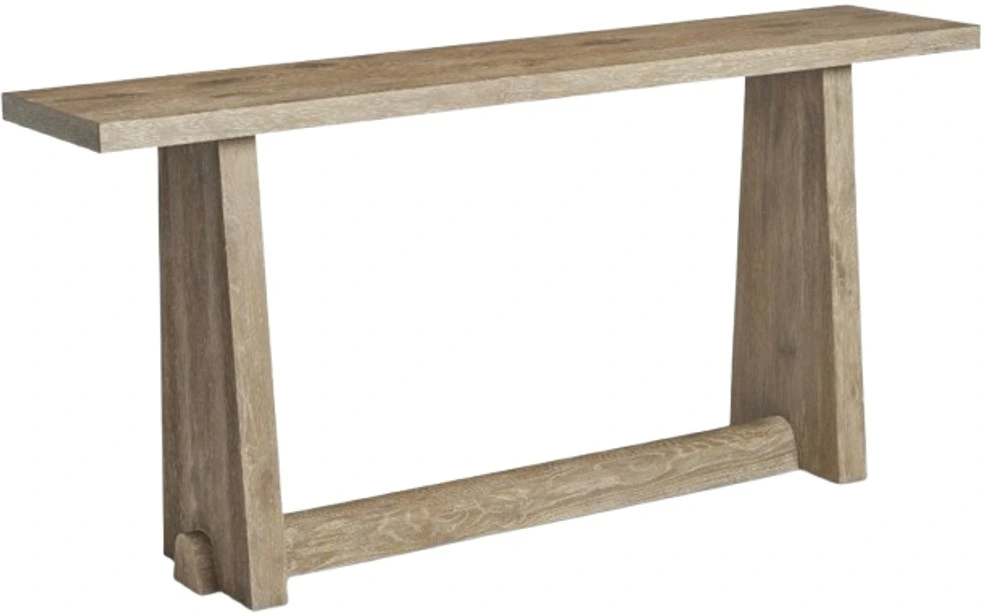 A traditional refectory table inspired the design of the Tribeca console table. Shaped and tapered legs are joined by a stretcher that appears to wrap around the base of each leg. Clean lines and a rustic aurum finish offer a rich character and a relaxed style.Read More