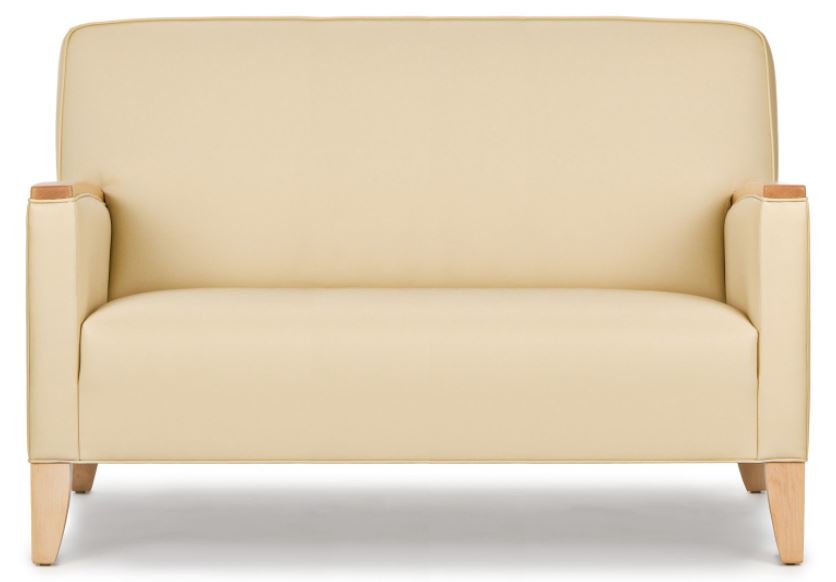 Accent your living area with Associate Three Seat Sofa with Wood Arm Caps. Beige upholstery and a dark yellow finish on the legs give this sofa an alluring appeal. With its beautiful design, this piece is sure to make a statement in your living room.Read More