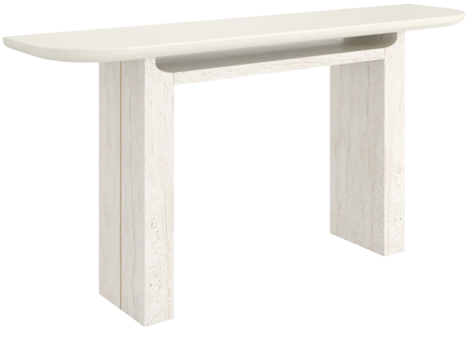 Bring sophisticated charm to your space with the overlap console light. Its luxurious whisper of gold finished top pairs exquisitely with side panels crafted from naturally beautiful unfilled travertine, making each piece uniquely elegant and timeless.Read More