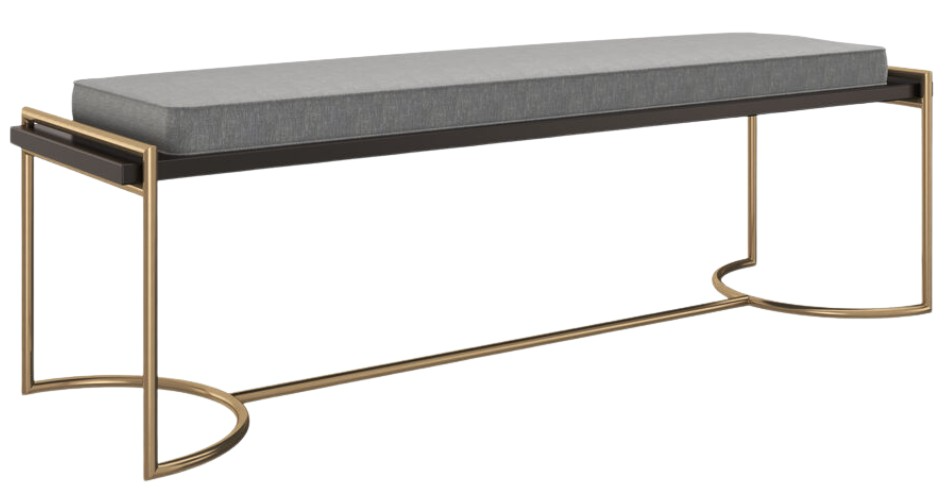 Simply sophisticated, contemporary take on the end-of-bed bench introduces a European-inspired design to bedroom suites and dressing areas. Minimal embellishment and clean lines emphasize its refined use of materials: a shimmer woven pewter fabric seat, trimmed in Dark Chocolate and suspended between brackets at the top of a Champagne Gold base.Read More