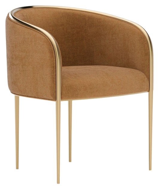 Generous scale meets refined line in the Tension Dining Chair. Overfilled cushioning in Vintage Camel Velvet offers indulgent comfort, while a shaped metal frame adds quiet luster. Scaled for dining yet welcome in living spaces, it brings soft glamour and versatility to luxury homes.Read More