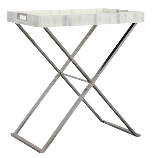 The Century® Compositions White Tray Table with Pewter Base features a sleek white tray-style top paired with a sophisticated pewter-finished base. Its versatile design provides both elegance and functionality, making it ideal for serving or display purposes in living rooms or bedrooms.Read More