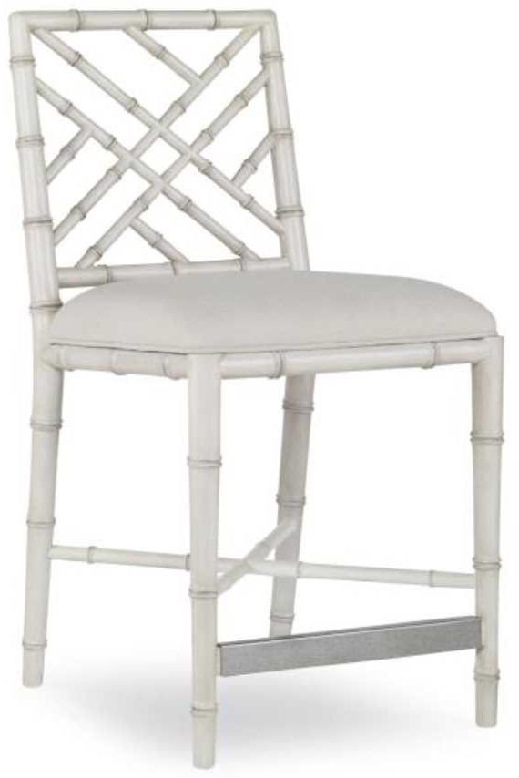 With its lattice back, bamboo styling, and beautiful rubbed-through finish, this counter stool is a nod to the classic Chinese Chippendale style. Truly timeless, this chair works in all settings and styles. An upholstered seat in linen-like flax-colored fabric.Read More