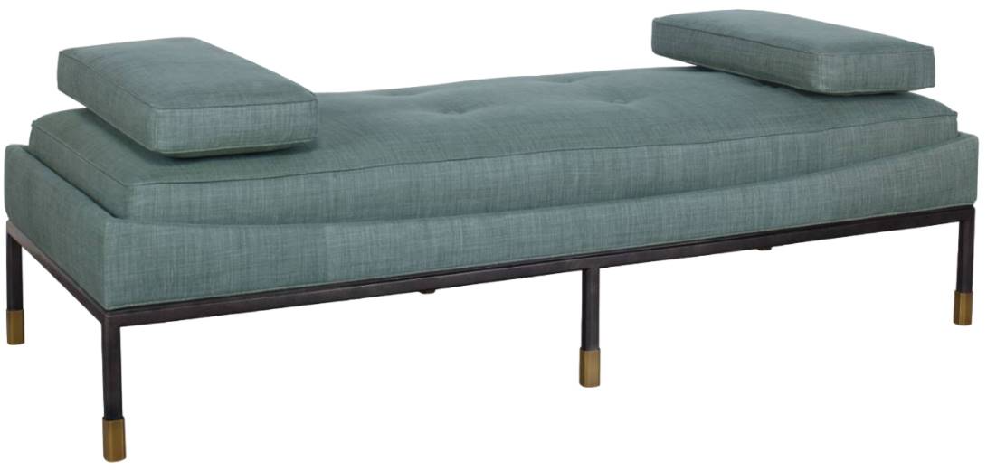 The Jennings Daybed is a very unique new upholstery shape on a hexagon faceted iron base with elegant base foot details. This upholstered box tufted seat sits within a slender upholstered box with a gently curved detail.Read More
