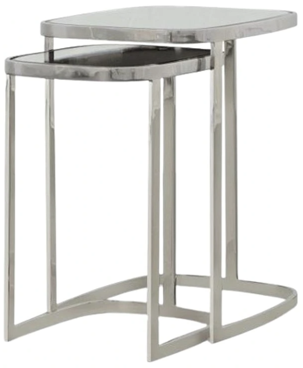 Introducing the perfect accent table for any living room design! These luxurious nesting tables offer a unique design in a polished nickel metal frame with a clear mirrored top. Constructed from sturdy materials, this table is sure to be ideal for entertainment spaces.Read More
