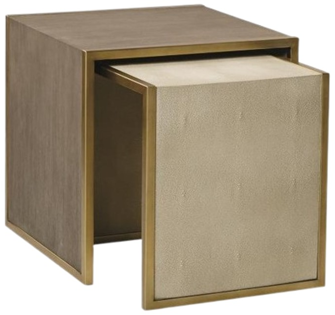 Small table: Cream faux shagreen with satin gold finish metal trim