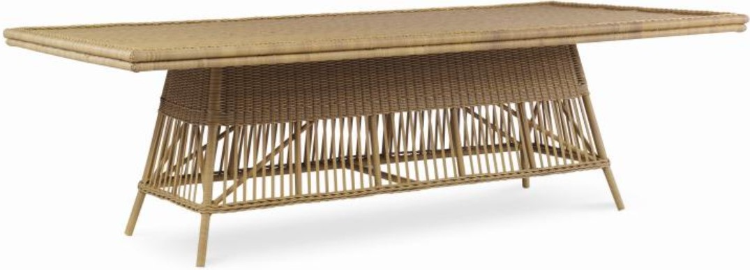 Elevate your outdoor with this Thomas O'Brien Outdoor Mainland Wicker Dining Table from Century. Shown in Natural finish. Make a bold statement by incorporating this stunning furniture into your outdoor space.Read More