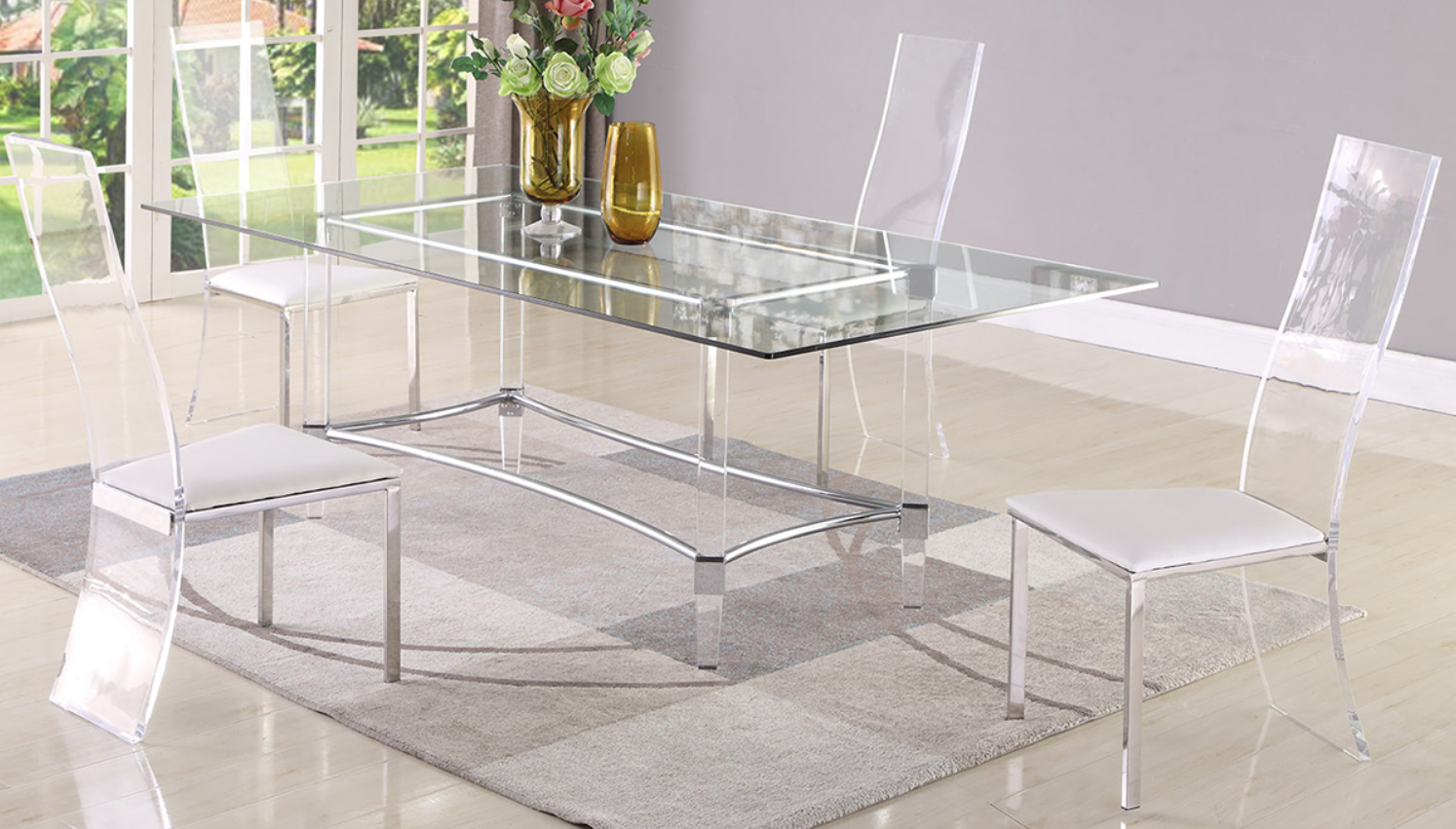 Acrylic leg with metal frame in chrome finish