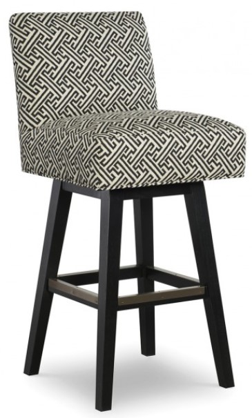 Accent your living area with the Beasley Swivel Bar Stool. Keyed Up Onyx fabric and Pepper legs finish give this stool an alluring appeal. Add this stool to your dining room decor and elevate the look of your space.Read More