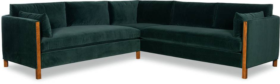 Shown in Fomo Aventurine fabric and Honey Pine finish