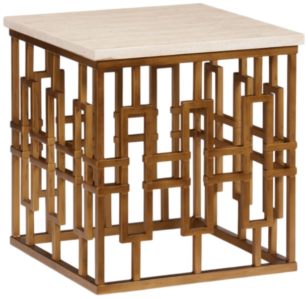 The Chicklet end table provides the side table opportunity to match the chicklet cocktail and console tables. Handsome jewelry-like bracelet design in a handsome aged gold finish with a honed travertine marble top.Read More