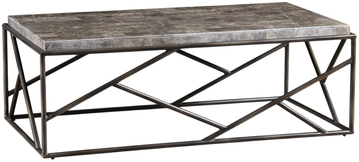 The Cullet cocktail has a unique geometric design base with soft round tube structure to accentuate design. The polished Santo Tomas parquet top insets into round tube frame for an aesthetically pleasing look.Read More