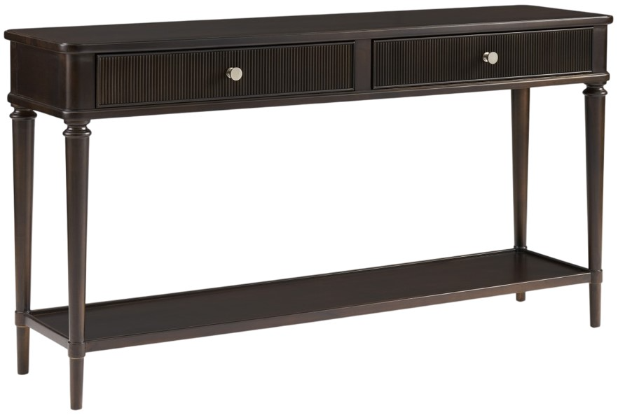 The Bennett console table from Sherrill Occasional is the perfect addition to any living room. Crafted from maple solids and cherry veneers, and available with a choice of satin nickel or champagne bronze hardware, this wood console table allows you to customize the perfect finish to your unique style.Read More