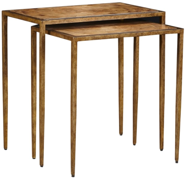 Set of 2 tables that can easily can fit into a rustic, traditional or modern home. The top has a swirl mosaic pattern made up on wood inlay for added sophistication and detail.Read More