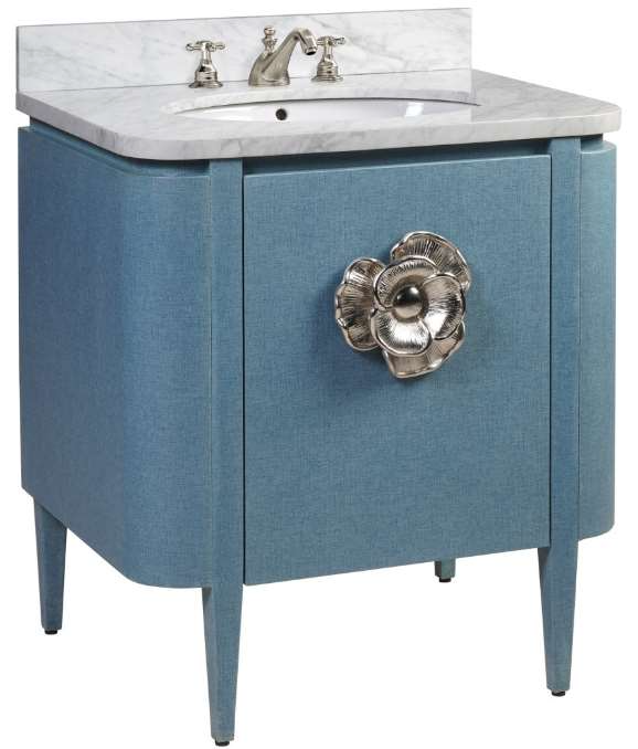 The impressively sized brass flower pull on the Briallen 30" Blue Vanity is a stunning ornamentation that contrasts the caviar black finish. The interior has one adjustable shelf and there is an optional wood tray that attaches to the inside of the door.Read More