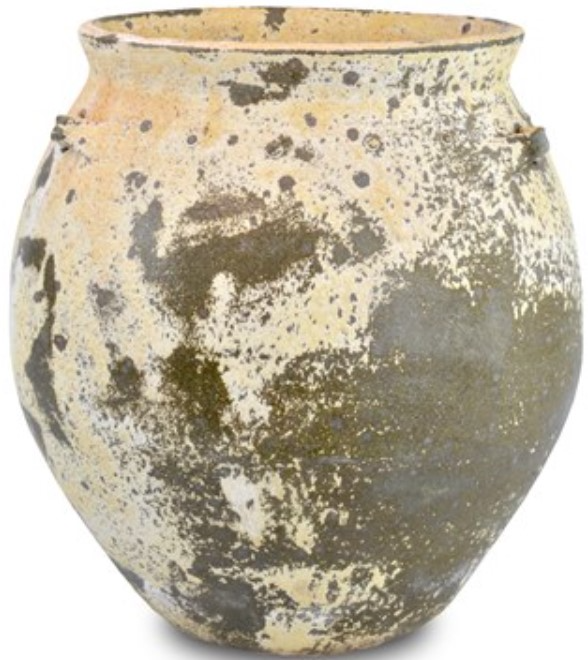 The antique white planter has pitting in its terracotta surface to create the ruse that it, too, has been tucked away in the landscape for ions.