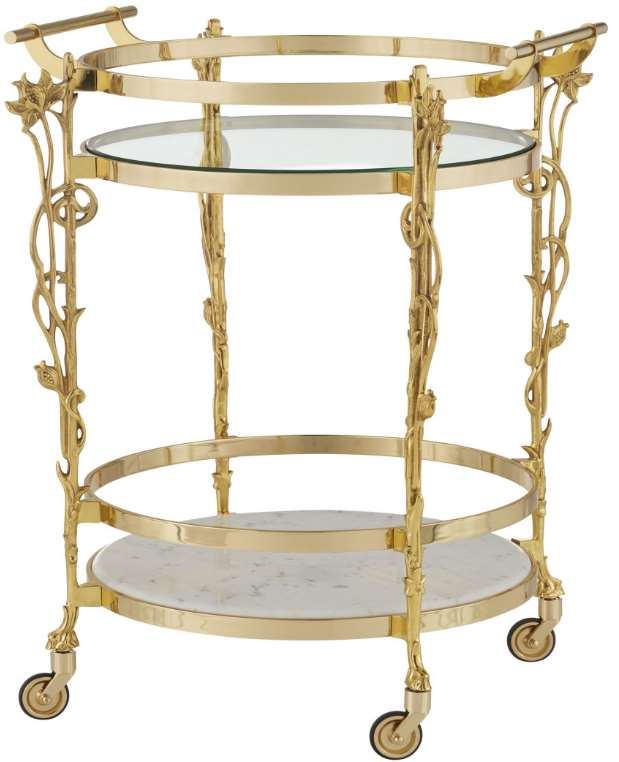 Reflecting its beautiful name, which means flower in Italian, the Fiore Bar Cart has lovely floral motifs flowing up each of its legs toward a metal band into which a glass top is inset.Read More
