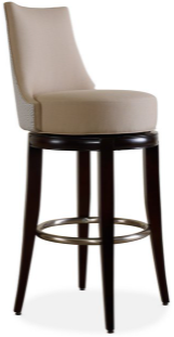 The Amherst swivel dining stool has a modern feel with its smooth, rounded back that gracefully tapers up from the round seat. The top rail has movement both in its curved shaped and in its slightly dipped center. Welt trim accentuates the overall shape of the back. The tightly upholstered round seat attaches to the base by memory swivel. The round, exposed wood base with tapered legs and metal foot ring completes the sleek, clean look of this stool.Read More