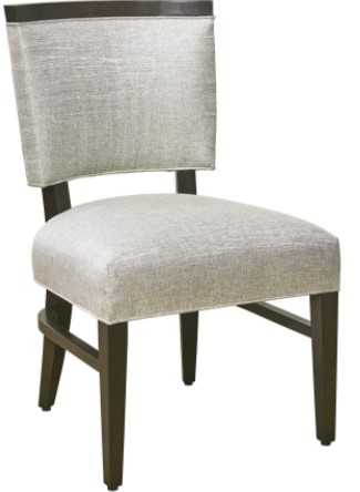 The Arlington side chair with stretchers is a transitional style chair that has the perfect marriage of both exposed wood and upholstery. This clean-lined chair has a beautiful exposed wood solid top rail framing the inset upholstery both on the inside and outside back. The back is open between the back and seat accentuating the back curvature of the tightly upholstered seat. Exposed wood back posts flow down from the bottom back rail and curve to meet the floor. Tapered front leg posts with their light scale complement the overall transitional, clean look of this new chair. A great modern look for today’s modern customer.Read More