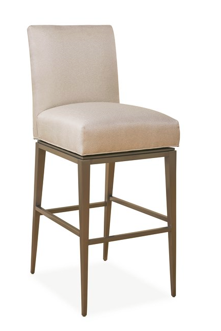 The Barnwell stool has the same features as the Barnwell chair having a simple, tailored upholstered seat that attaches to the metal base by the memory swivel. The base recesses underneath the seat part giving the illusion the seat is floating over the base. The metal base is well scaled having long tapered legs and delicate stretchers that are finished in a beautiful, plated Antique Silver finish. Also available in Antique Bronze and Oil Rubbed Bronze finish..Read More