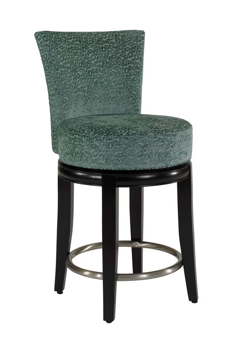 The Burke swivel dining stool features a seat with a memory swivel on an exposed wood base. The wood base has a beaded top band with tapered legs that flare. The metal foot ring is available in either an antique brass, bronze or a satin nickel finish.Read More