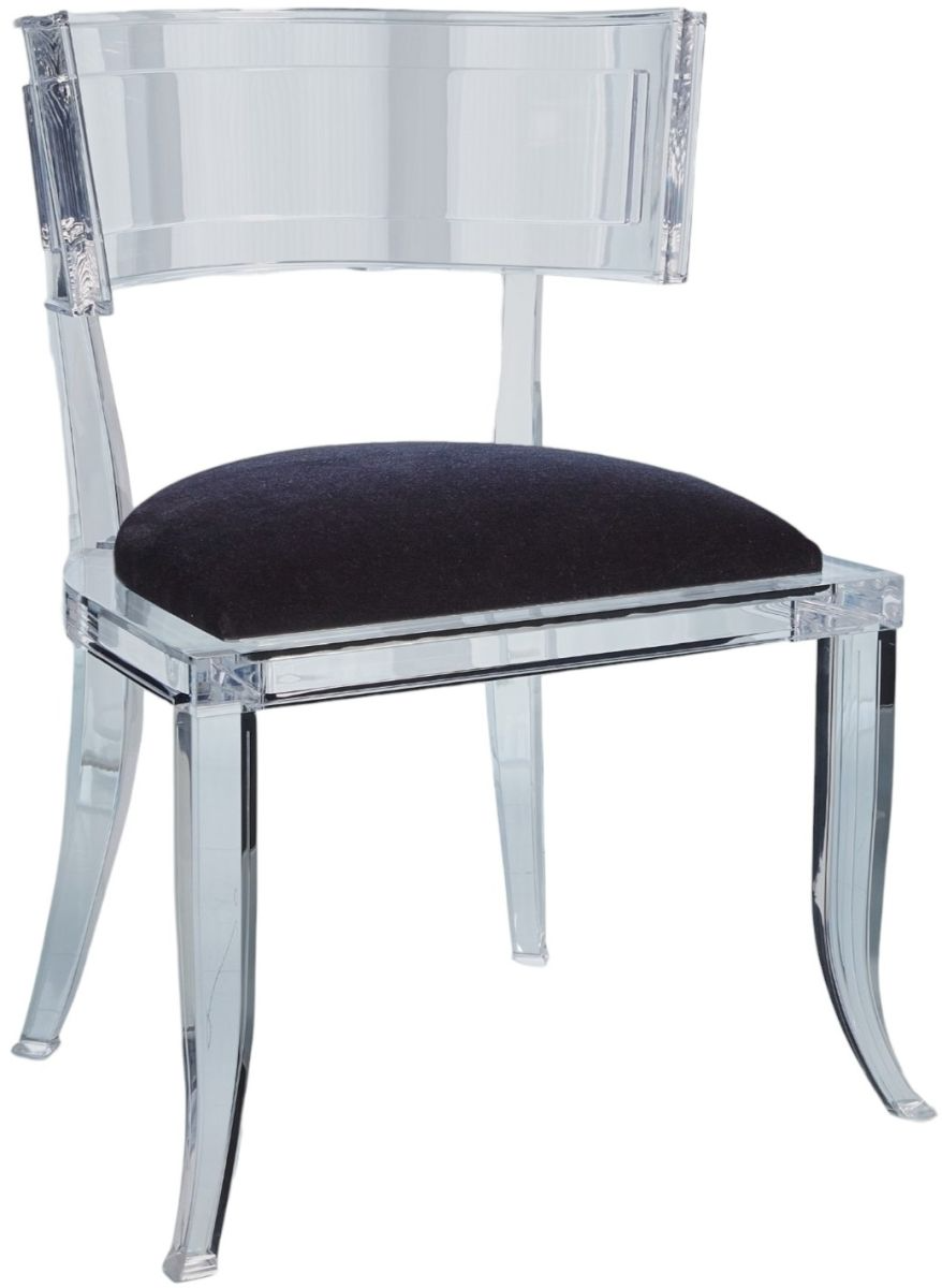 Inspired by our original Klismos Chair, we thought it would be equally stunning in Italian acrylic! The clear acrylic gives the illusion of daintiness, but this piece is actually quite structurally sound. The curved back hugs you as you sit comfortably on the mohair cushion. Elegantly shaped legs with a gentle sweep extend down to pretty little feet.Read More