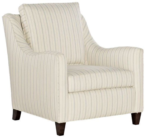 The shape of the top of the arm flows into the wing, forming a subtle scoop effect where the elbow rests which adds both eye appeal as well as comfort. It has tapered legs. With designs ranging from sophisticated modern to comfortably chic, our wide selection of fully upholstered chairs will add the finishing touch – and some panache – to your room. Personalization options are endless with different finishes, nail head trims, and covers available. Options limited by style.