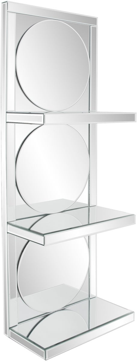 Beautifully constructed, this multi mirrored wall shelf features three shelves and small beveling throughout. Every surface is mirrored allowing for the most amazing refection's to showcase your collectibles or a works of art. Designed for the optimum visual impact these shelves fit into a traditional decor as well as the most contemporary lifestyle.Read More