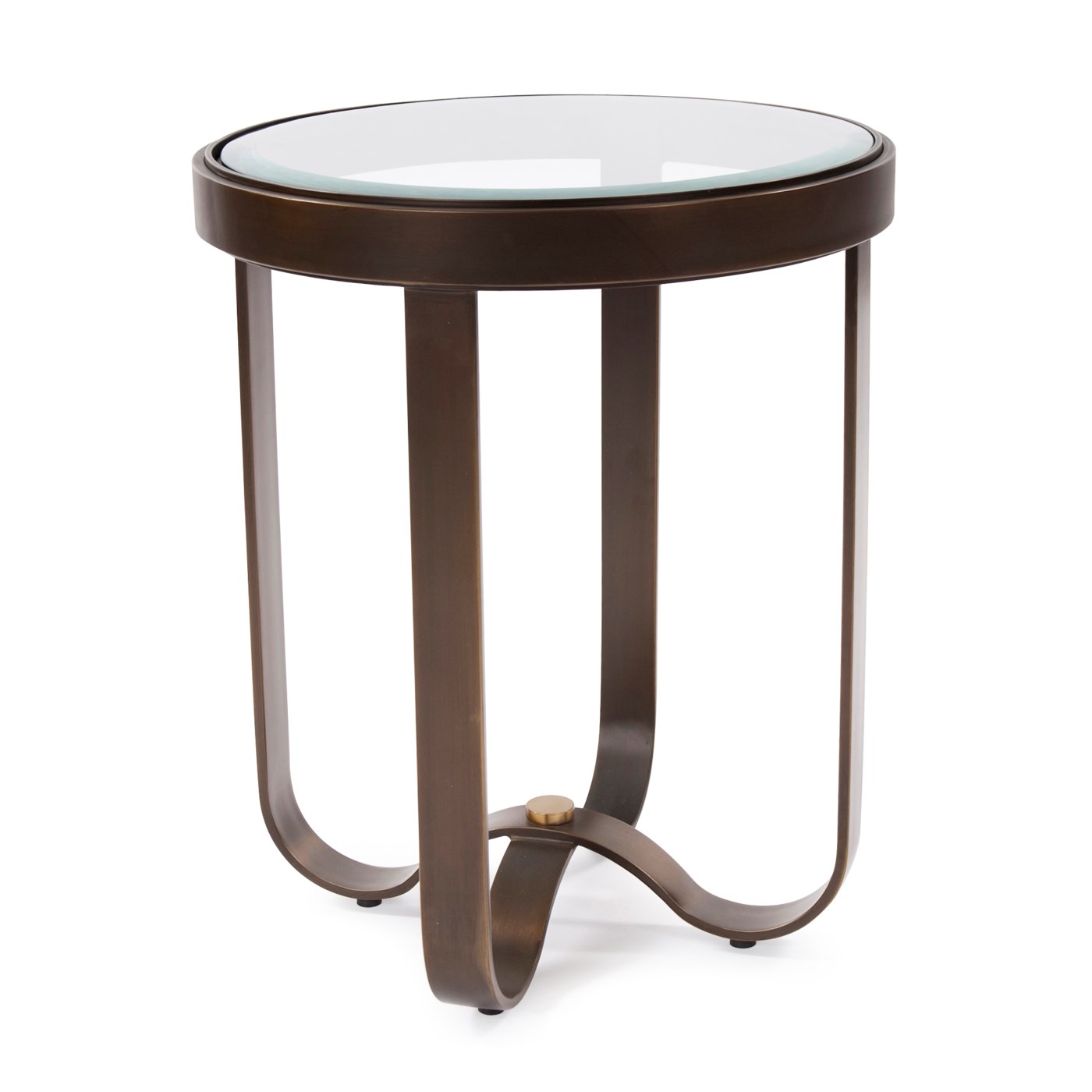 Recently I was able to watch iron being molded and casted. As the long metal bands were pulled over the craftsman's table, the metal started to bend and take shape. This was the start of our newest metal table collection. This coffee table features a round iron frame housing a thick tempered beveled glass surface. Also available in a coffee table.Read More