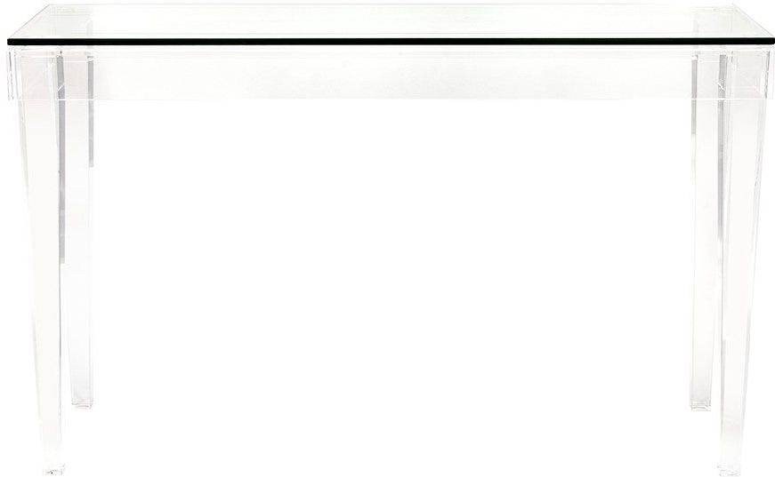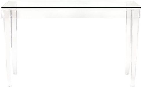 A crystal clear console table comprised of a thick acrylic base topped by a 1/2" tempered glass surface. The simple shape and clear finish lends this table to any room in your home. Coffee table also availableRead More
